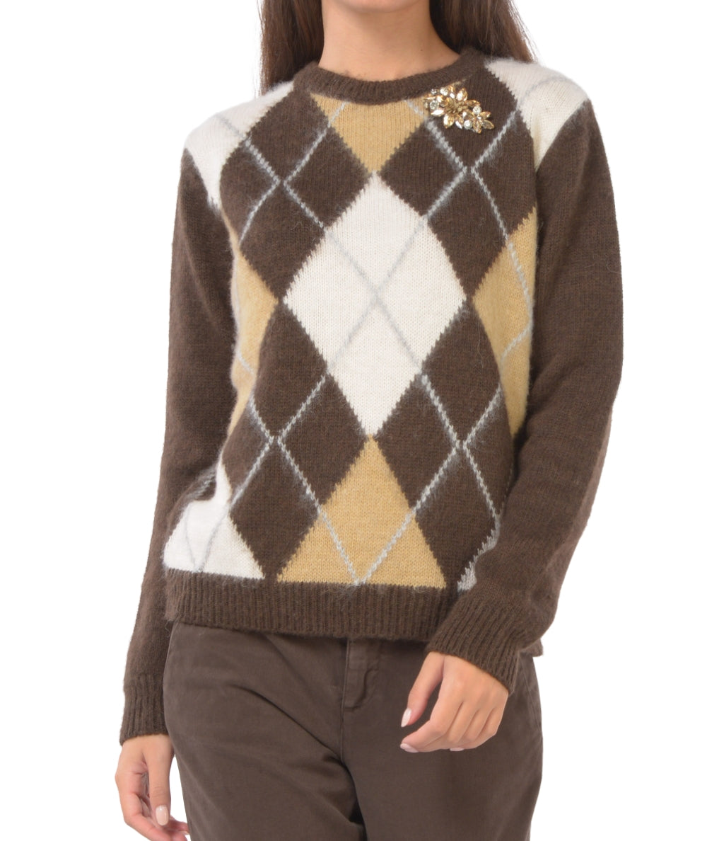 Kaos Jeans Diamond Pullover mit Brosche RIJFP001 Braun