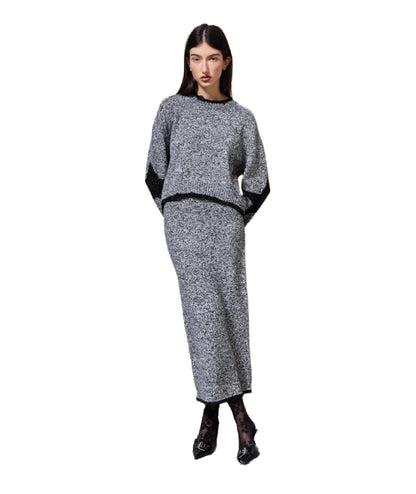 KAOS JEANS MOULINE' SWEATER WITH INTARSIA STARS QIJSM007 BLACK WHITE