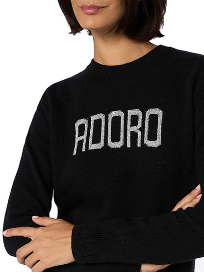 MC2 SAINT BARTH crew neck sweater with "ADORO" writing. Model: NEW QUEEN - ADORO 00L Code: QUE0010 Color: BLACK