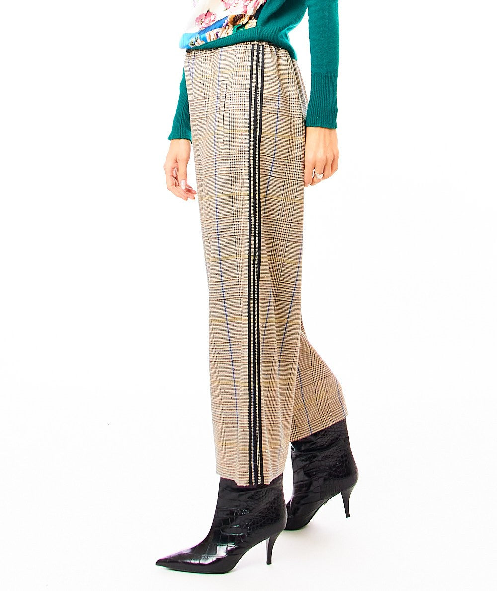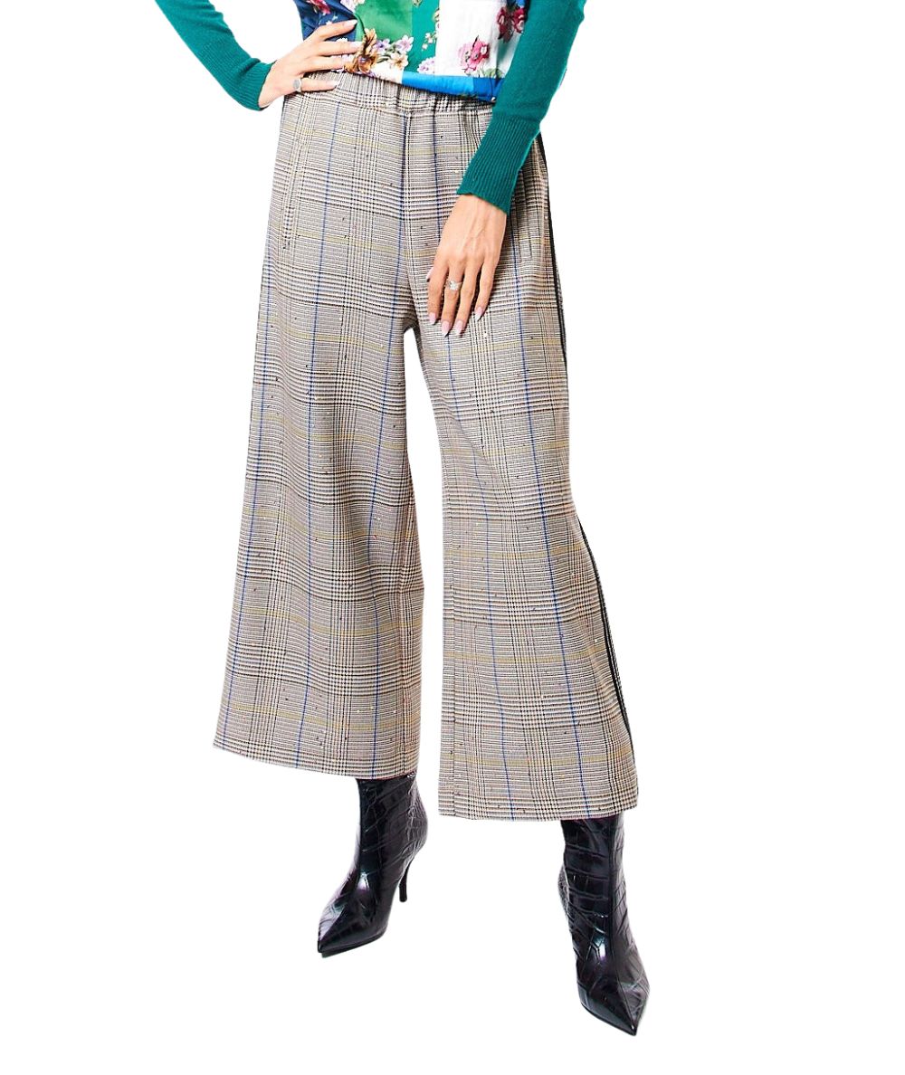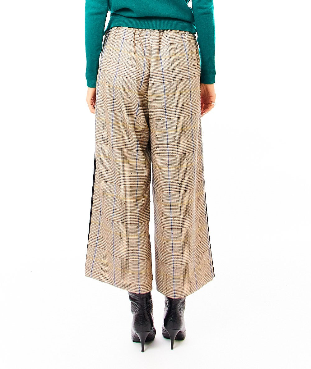 Palazzo trousers by SHIRTAPORTER in Prince of Wales, featuring sequins applied to the fabric. Made in Italy. Code: TR3140 Color: GREEN