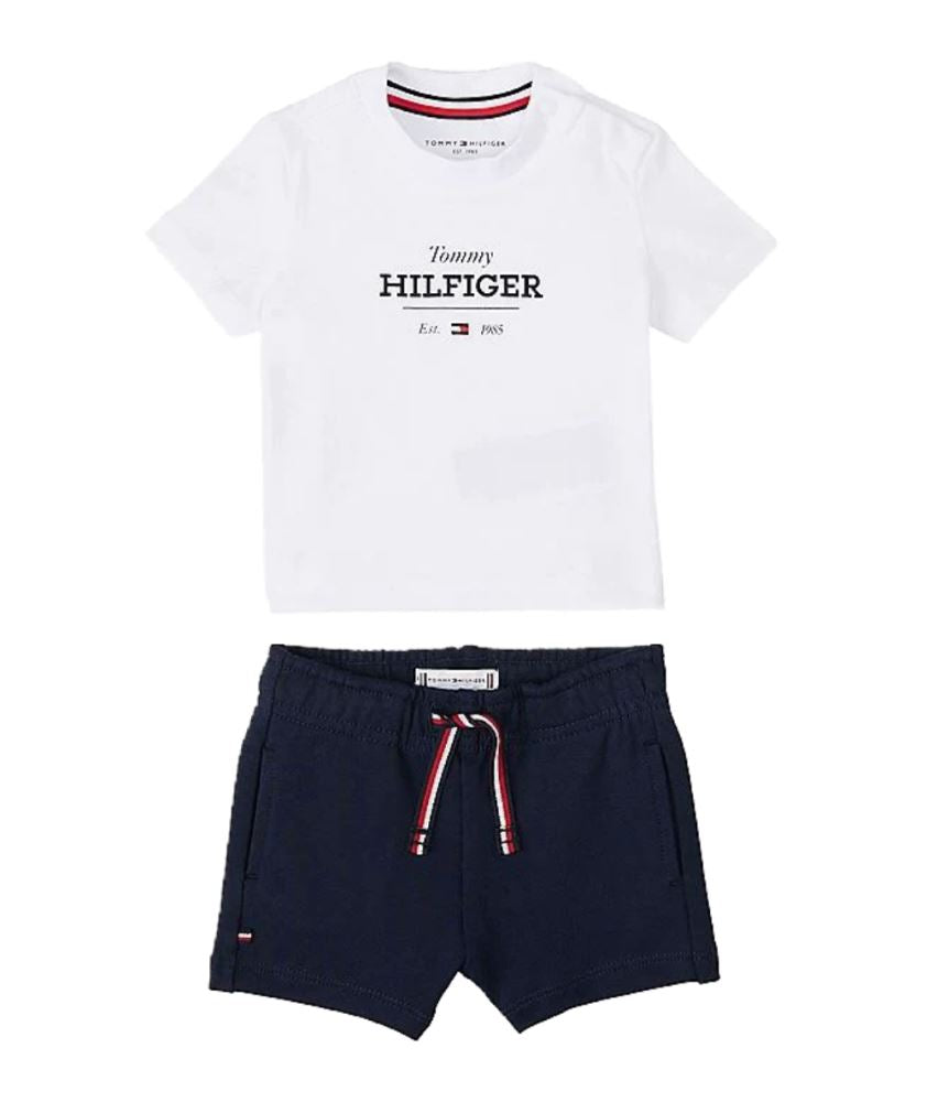 Tommy Hilfiger Logo T-Shirt and Bermuda Shorts Set KN0KN02047 White and Blue
