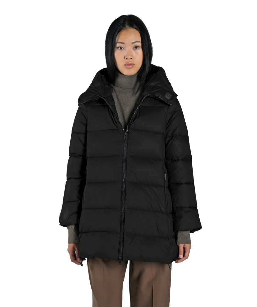 Piumino lungo di CANADIAN, caratterizzato da cappuccio e trapuntatura orizzontale. Modello: LEWISPORTE Codice: CN.G224104W Colore: NERO
