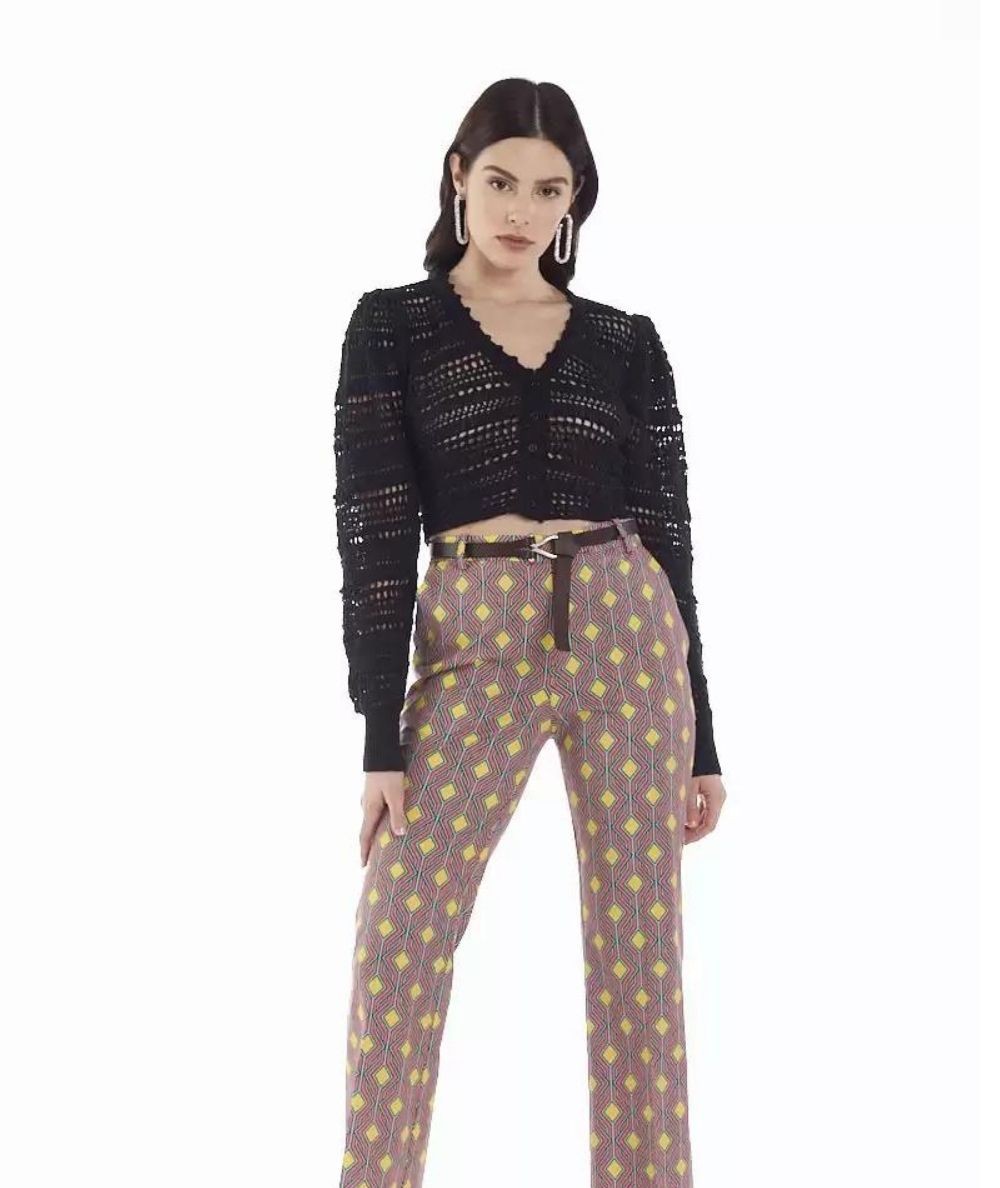 Cardigan di KAOS JEANS. Modello crop effetto crochet. Made in Italy. Codice: OPJLT006 Colore: NERO