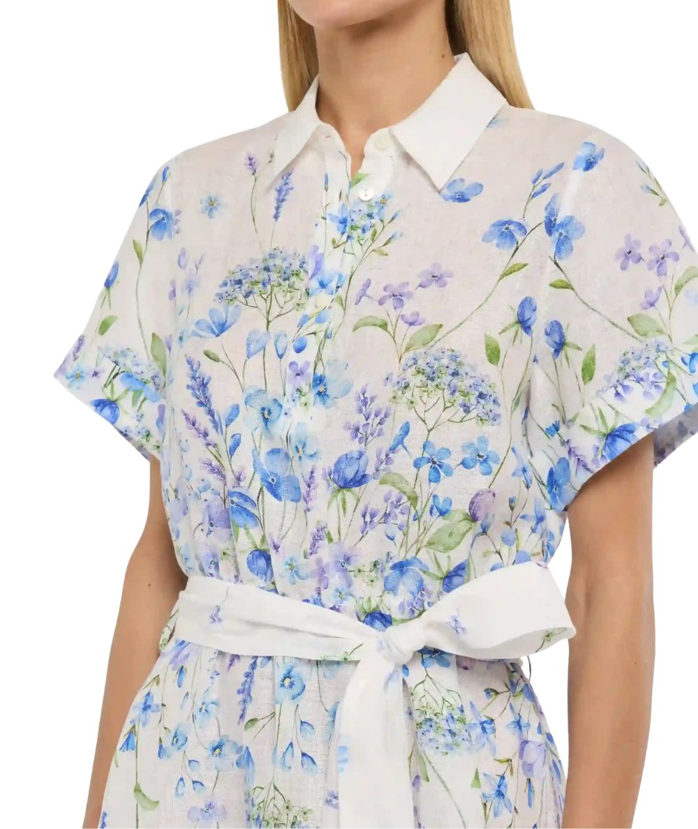 Mc2 Saint Barth Abito Corto in Fantasia Linen Flower Blue Joseline Multicolore